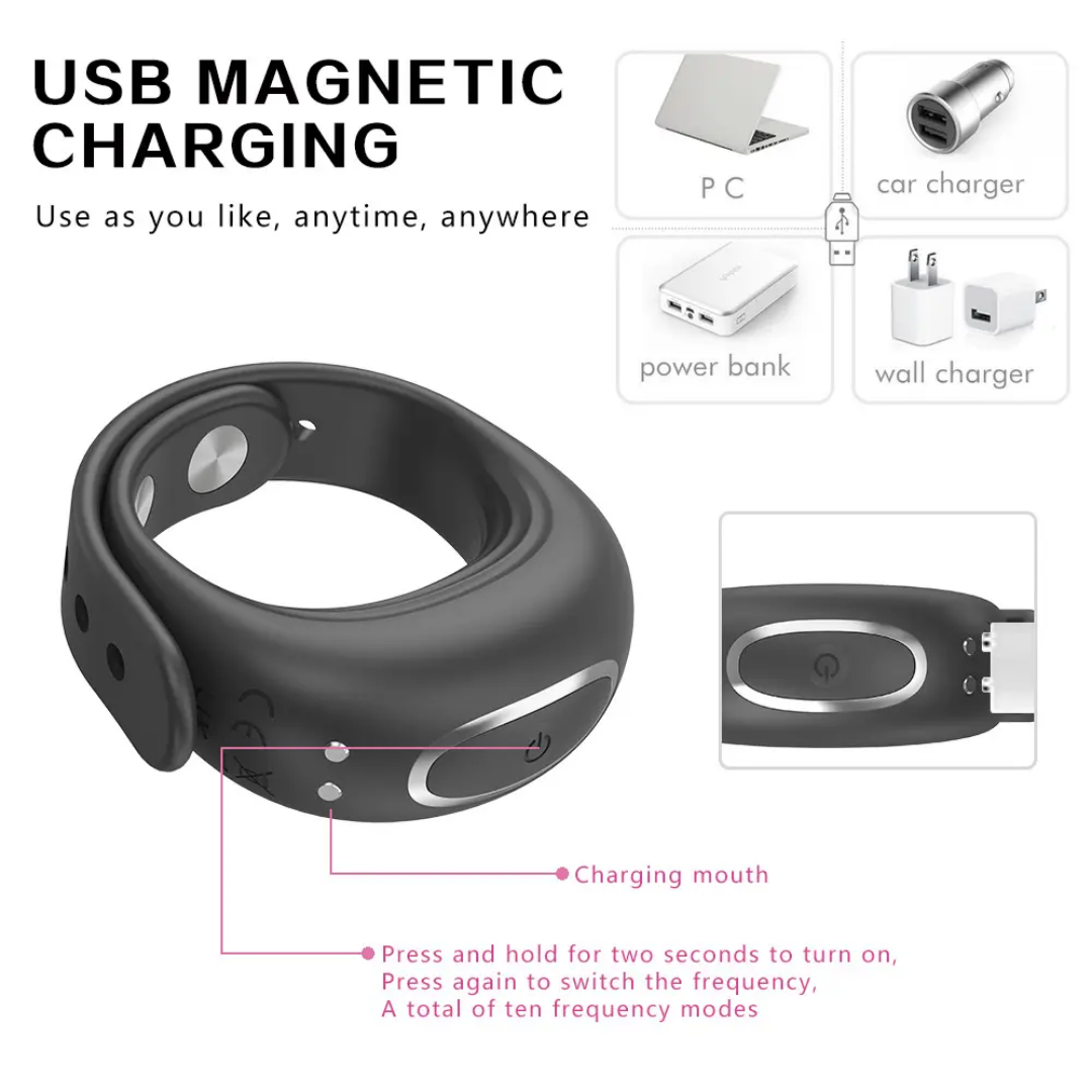 Diseñado con silicona de grado médico, suave y segura para la piel, este anillo vibrador se adapta cómodamente a distintos tamaños, asegurando un ajuste firme y sin deslizamientos para que disfrutes sin interrupciones.