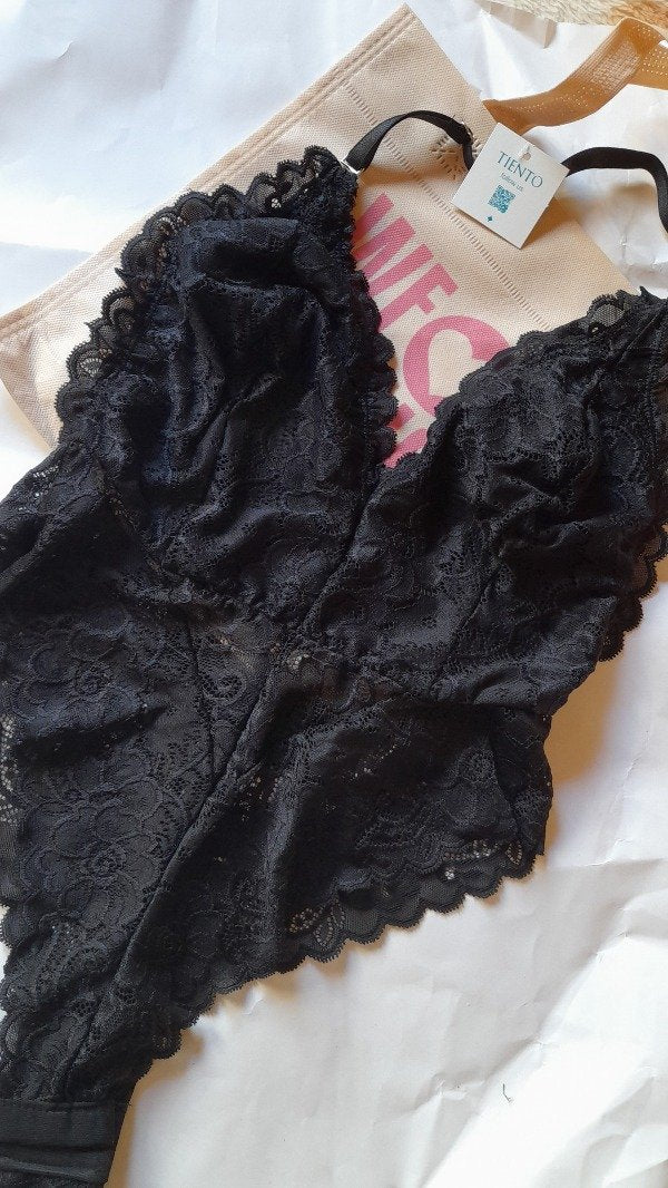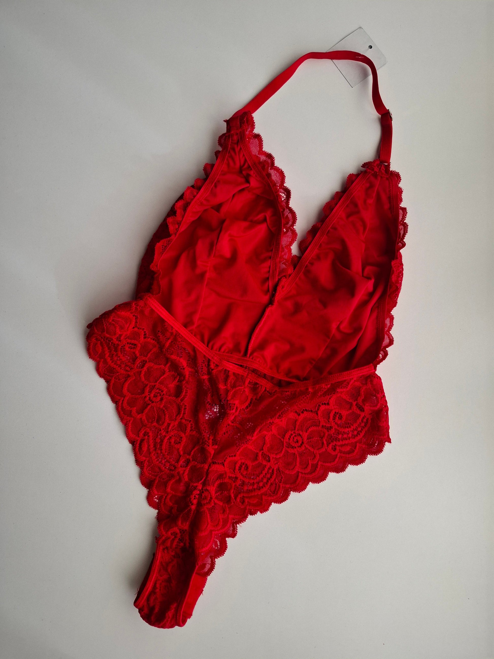 Body super sexy forrado en la zona del busto, tiene arandelas de metal con baño hipoalargenico. En la parte inferior colales. Realizado en puntilla elastica.