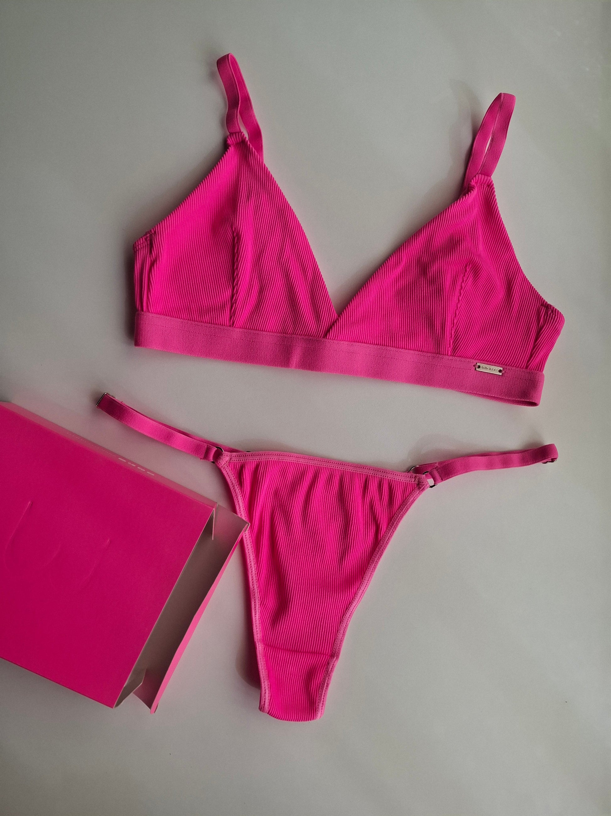 Una combinación perfecta de estilo y confort para tu ropa interior. Confeccionado en morley con interno de microfibra, este conjunto sin taza te ofrece una textura suave y adaptable que se ajusta a tu cuerpo como una segunda piel.
