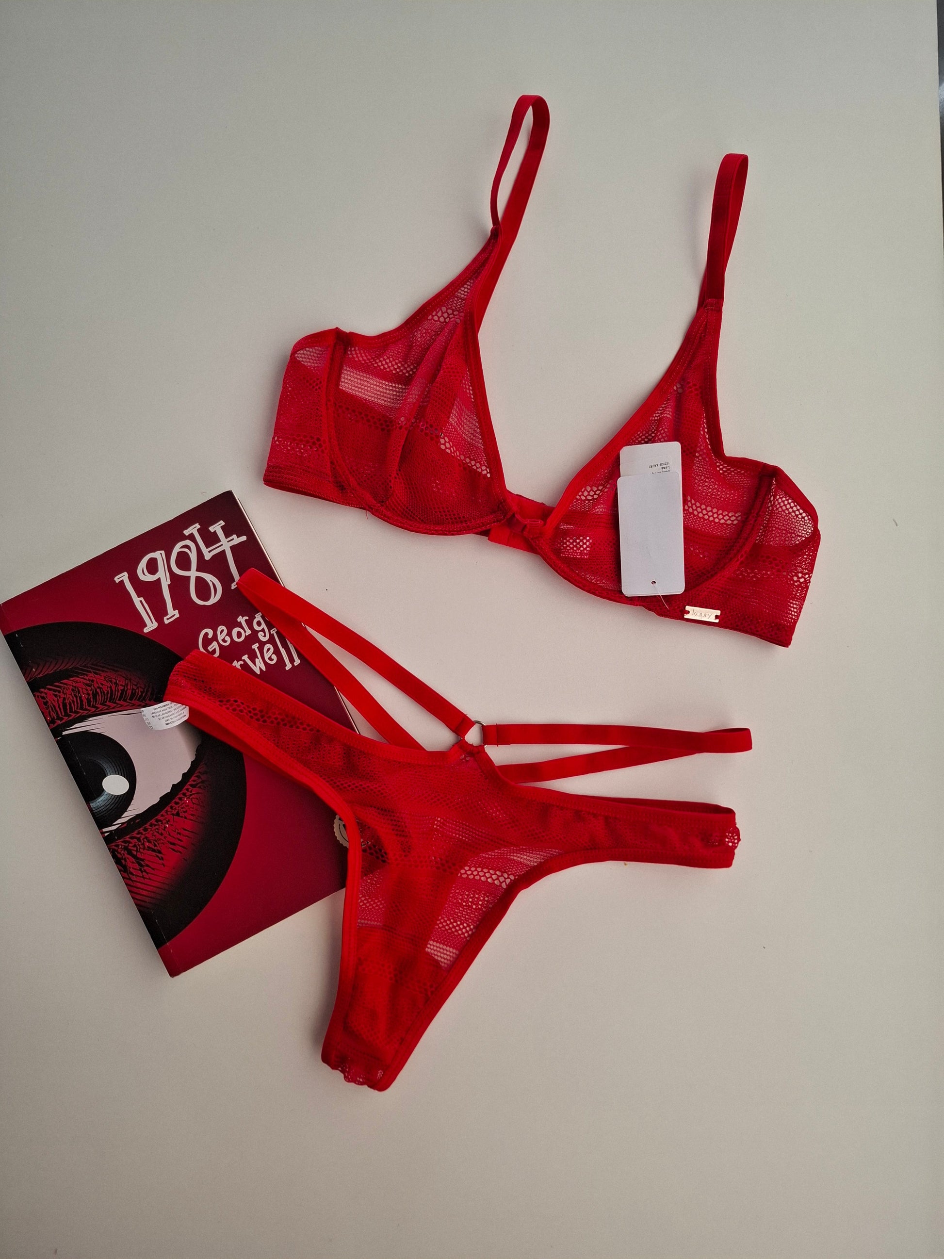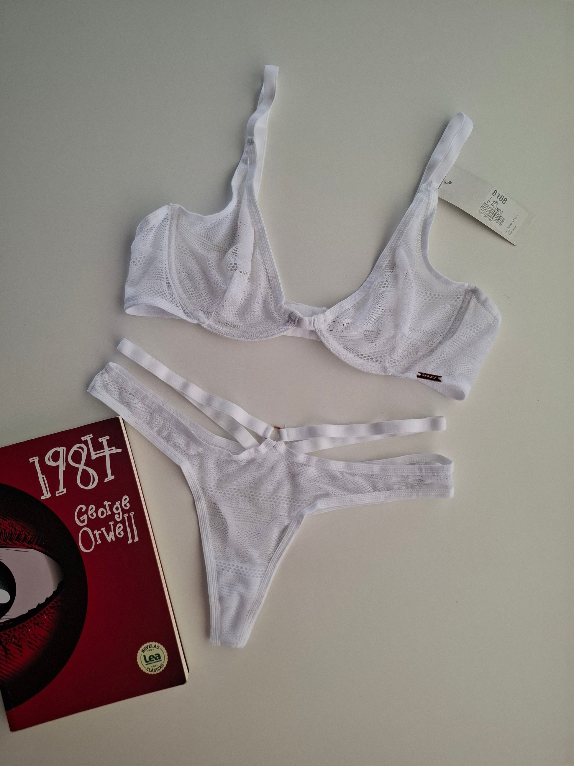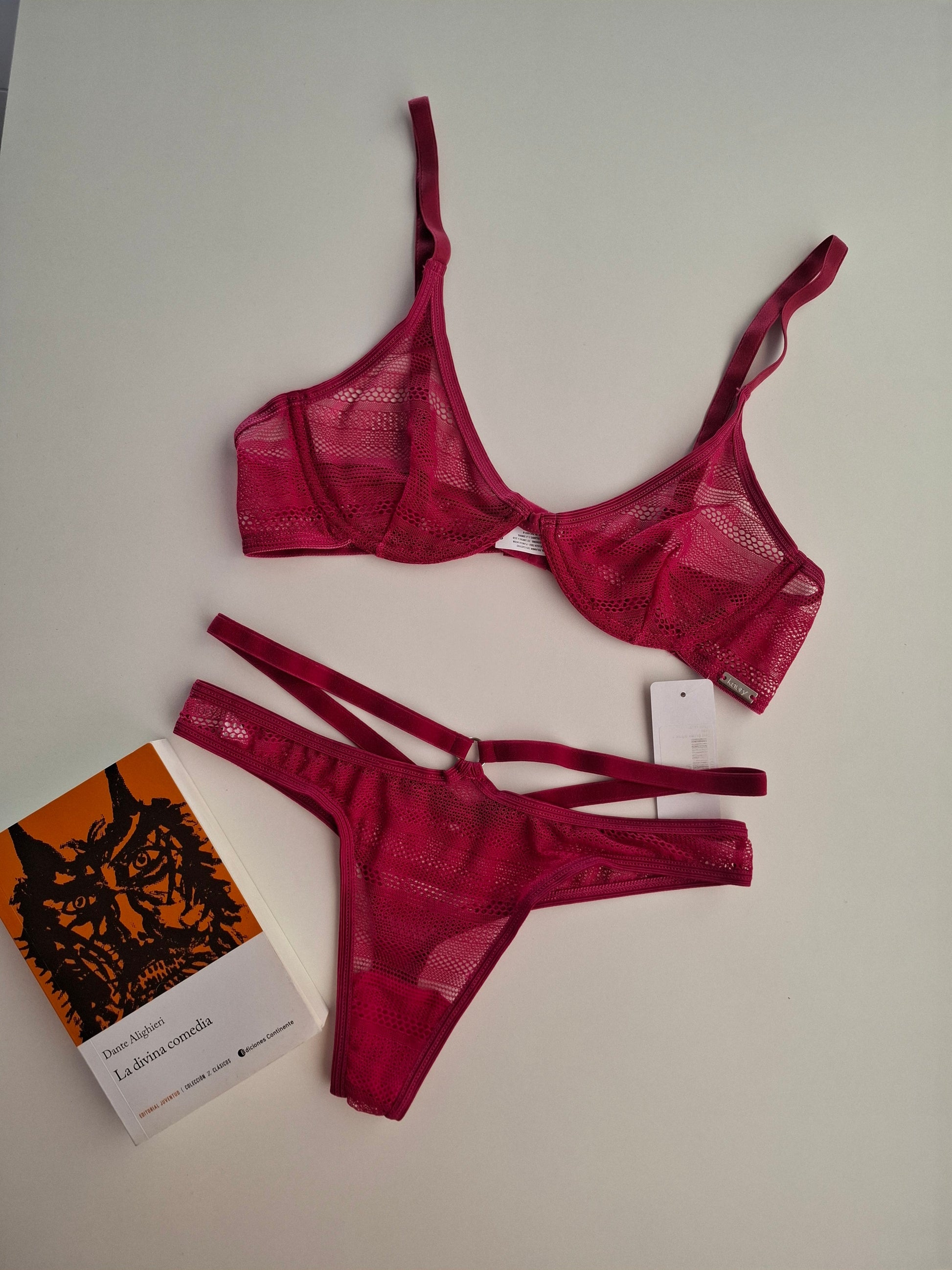 ART. 8168 Conjunto de encaje. Corpiño con arco sin taza y cola less.