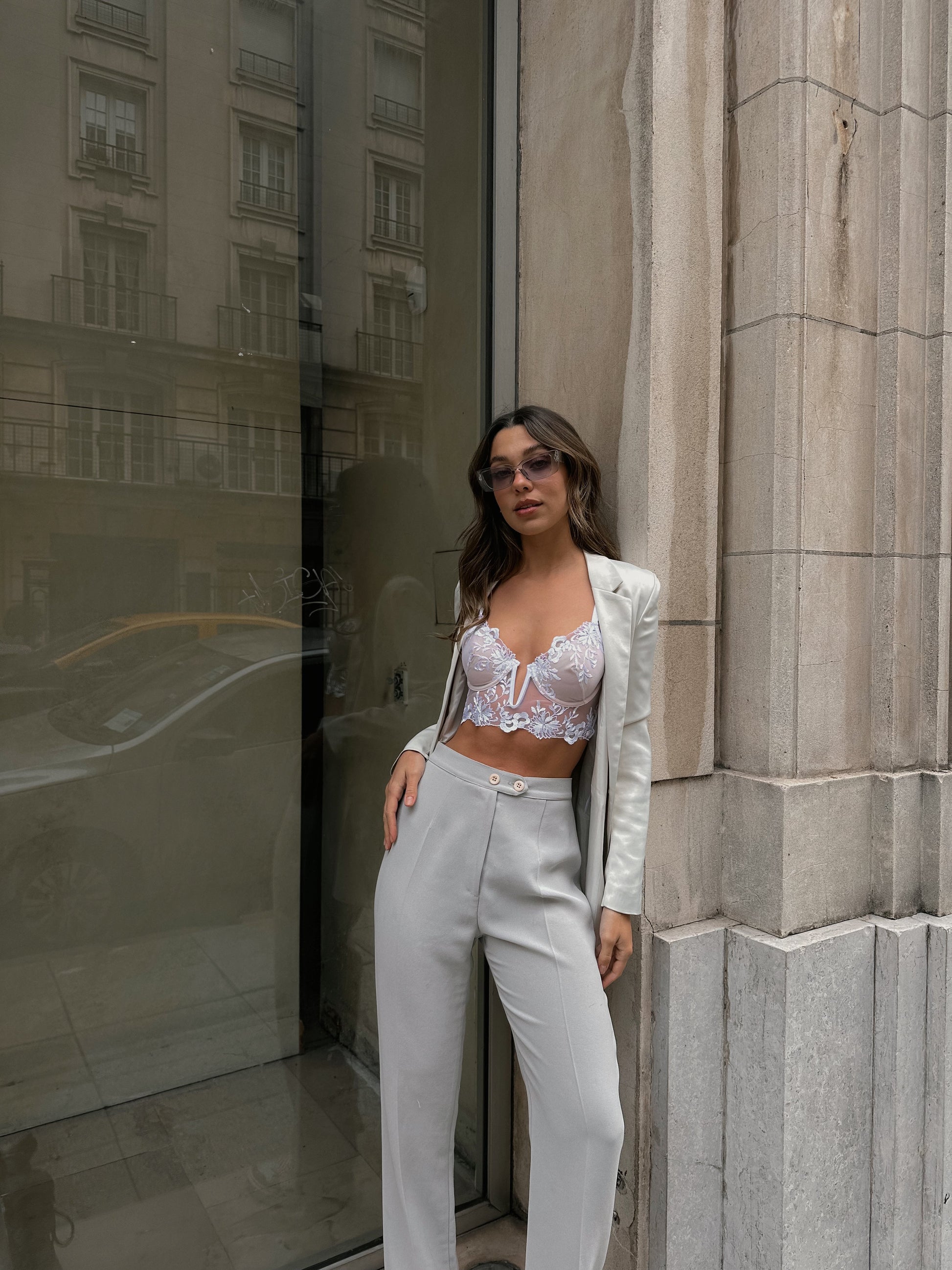 BUSTIER TIPO CORSET CON ARO Y CENTRO EN V. Y COLALESS REGULABLE.