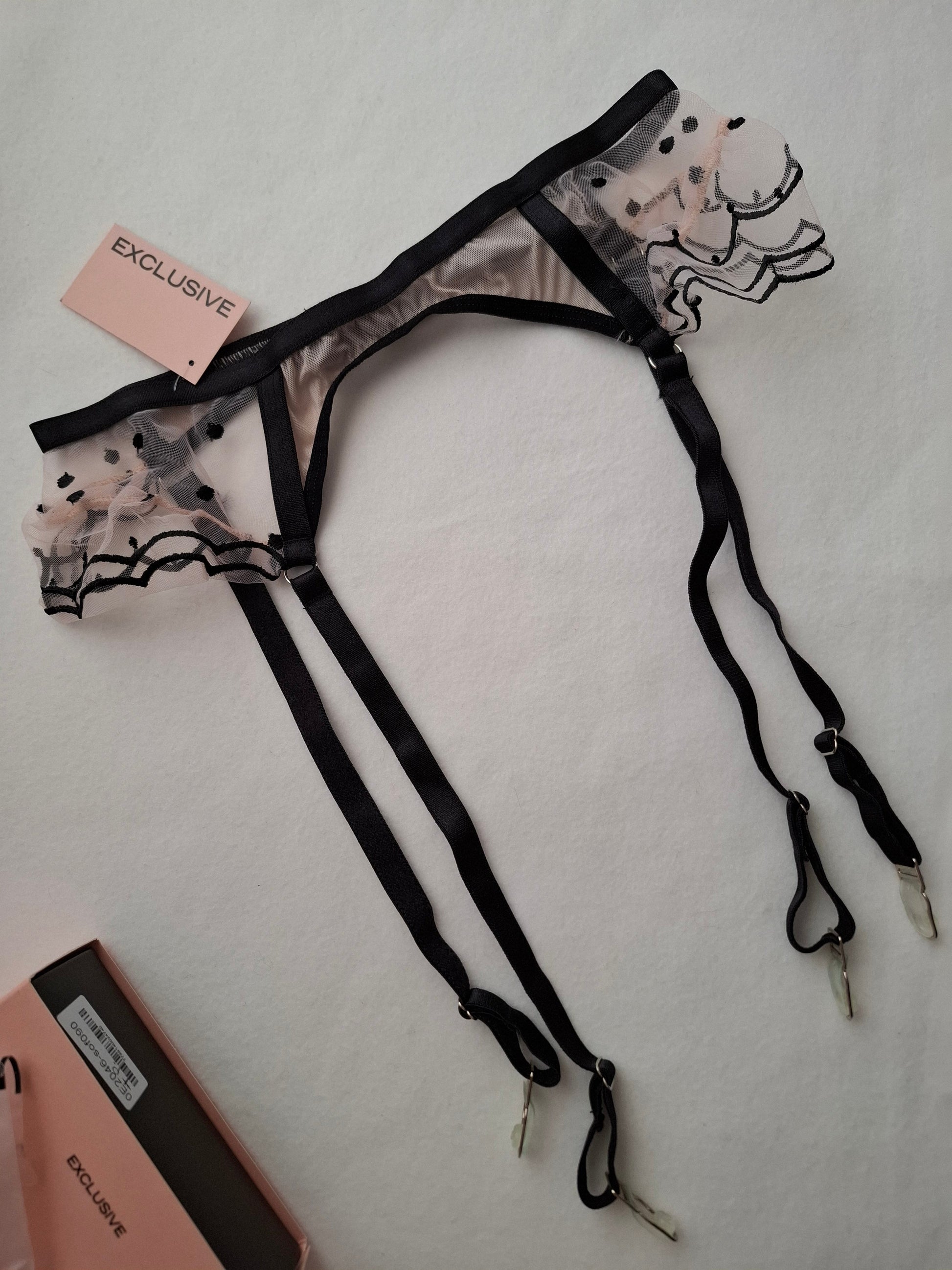 PORTALIGAS DE TUL BORDADO CON VOLADOS A LOS LATERALES.