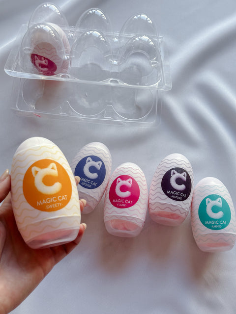 Descubrí nuevas formas de placer con los Huevitos Magic Cat, 6 texturas internas diferentes, diseñadas para brindar una experiencia única en cada uso. Ideales para la masturbación o para jugar en pareja, estos huevitos son suaves, elásticos, portátiles y muy fáciles de usar.