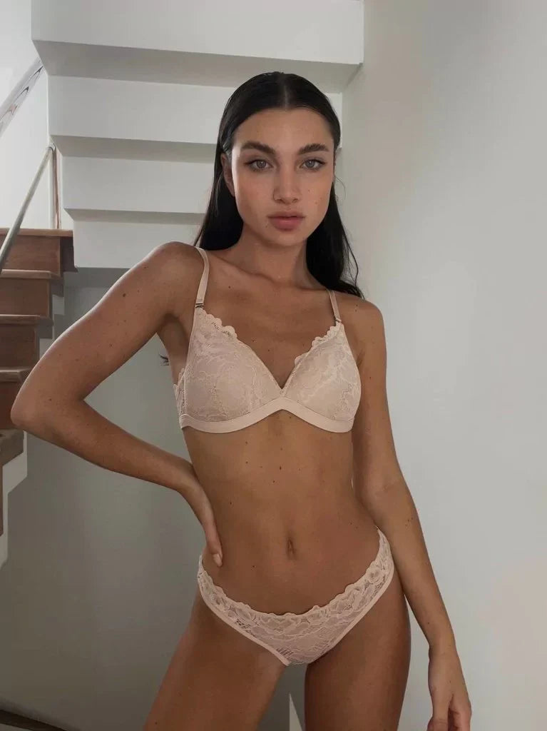 CONJUNTO DE PUNTILLA. SOUTIEN TRIÁNGULO SOFT ARMADO CON ELÁSTICO FORRADO DE MICROFIBRA EN CINTURA.