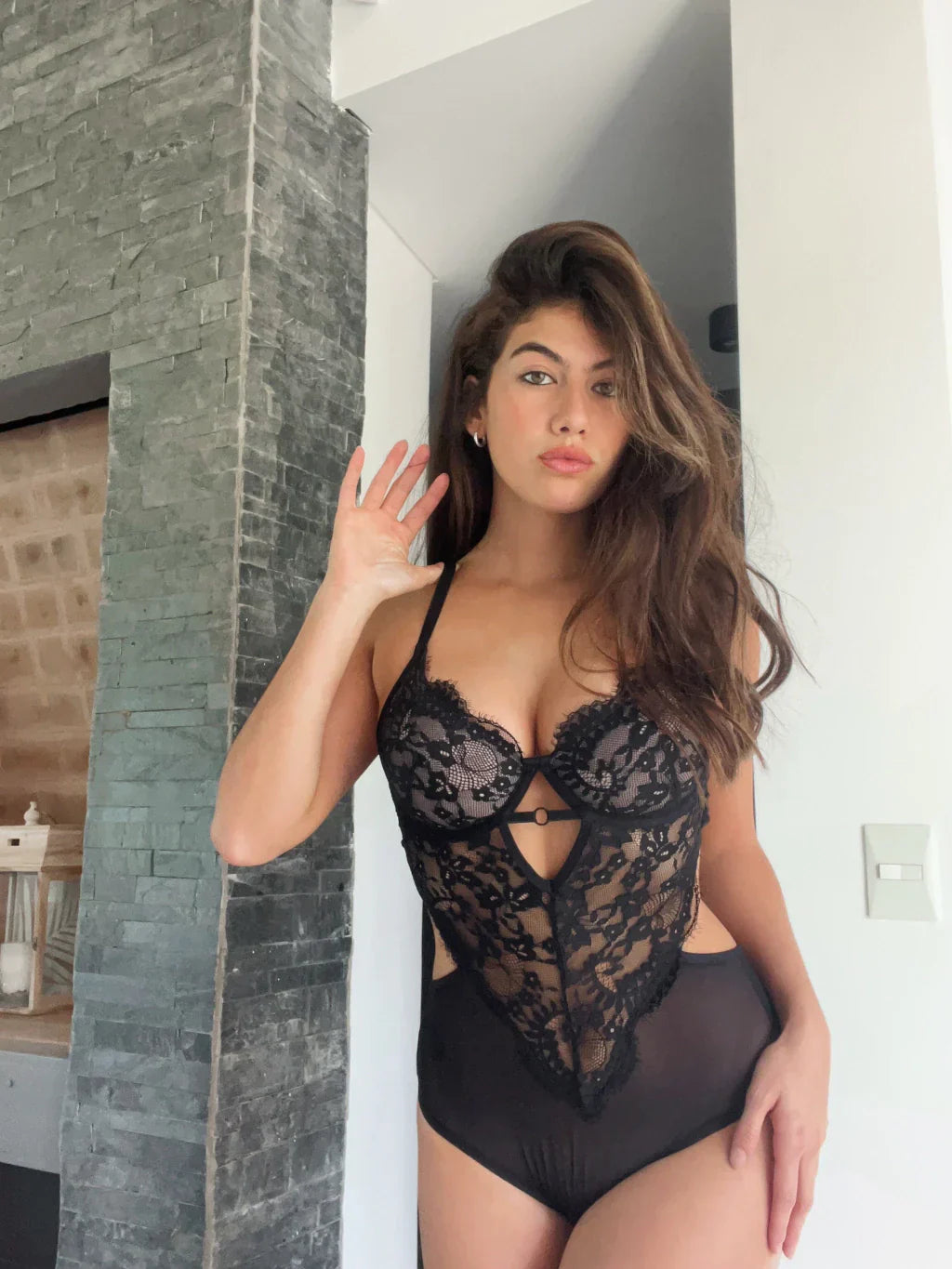 BODY CON ARO DE PUNTILLA Y TUL CON LYCRA. TIENE LAS TAZAS FORRADAS, IDEAL PARA USAR COMO PRENDA EXTERIOR, Y DETALLE DE ABERTURA EN CENTRO.