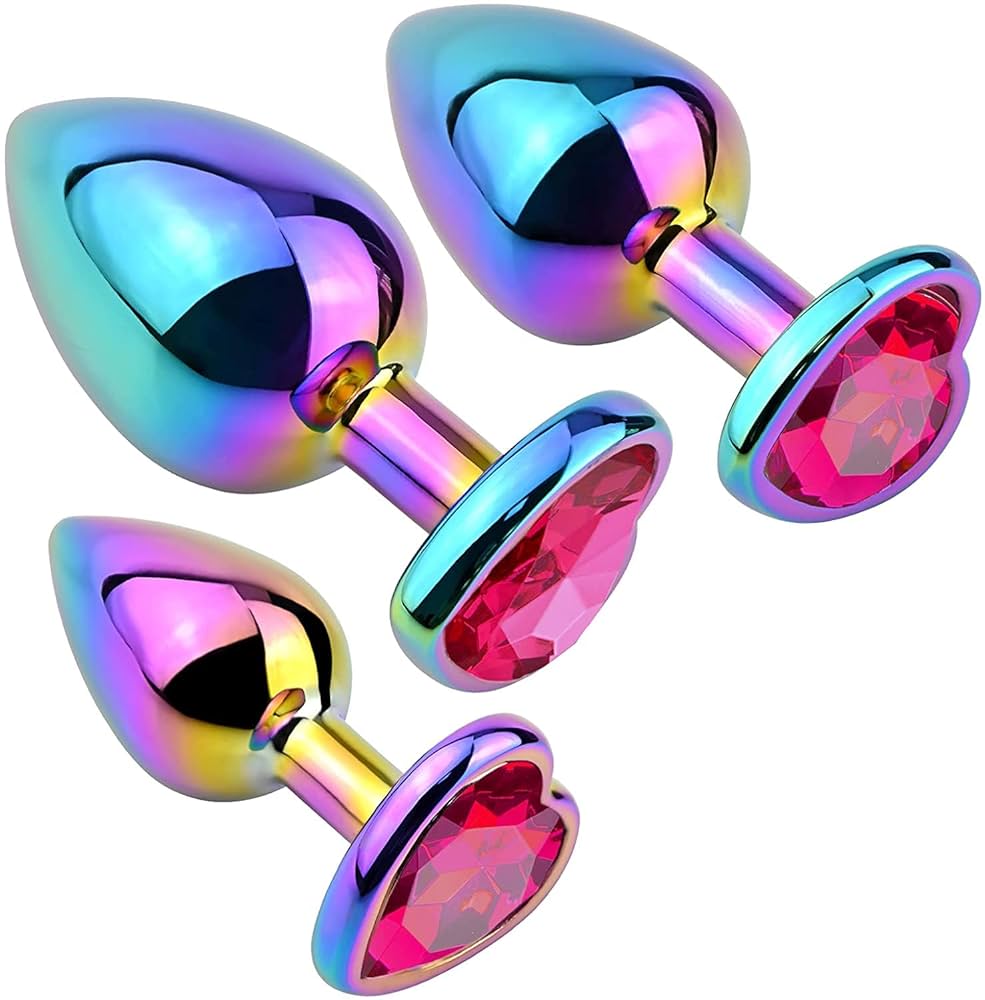 Plug Anal de Acero Quirúrgico Arcoíris con Joya en Forma de Corazón – 3 Tamaños